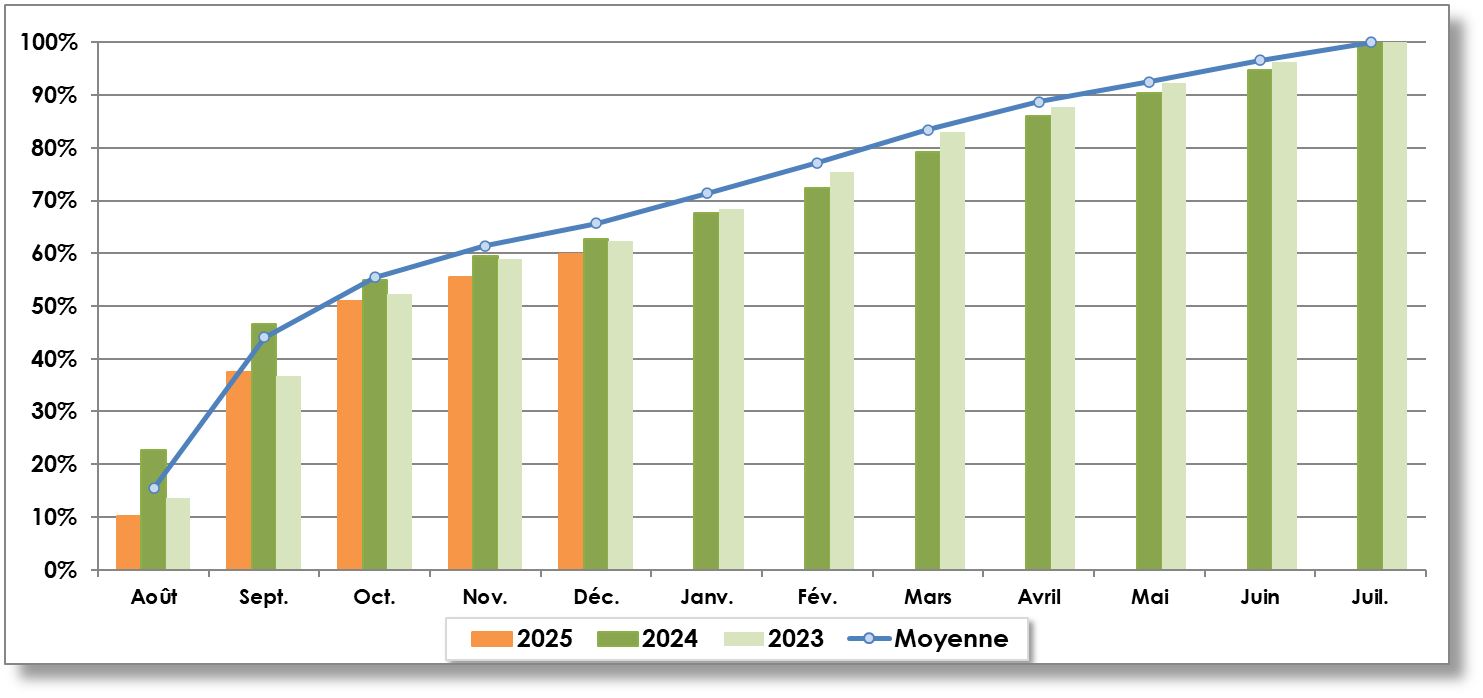 Année récolte | Août | Septembre | Octobre | Novembre | Décembre | Janvier | Février | Mars | Avril | Mai | Juin | Juillet | TOTAL |
