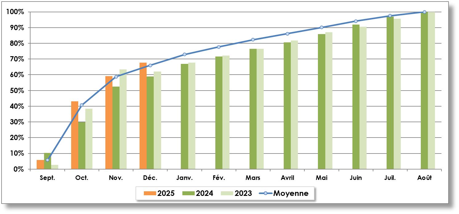 Année récolte | Septembre | Octobre | Novembre | Décembre | Janvier | Février | Mars | Avril | Mai | Juin | Juillet | Août | TOTAL |