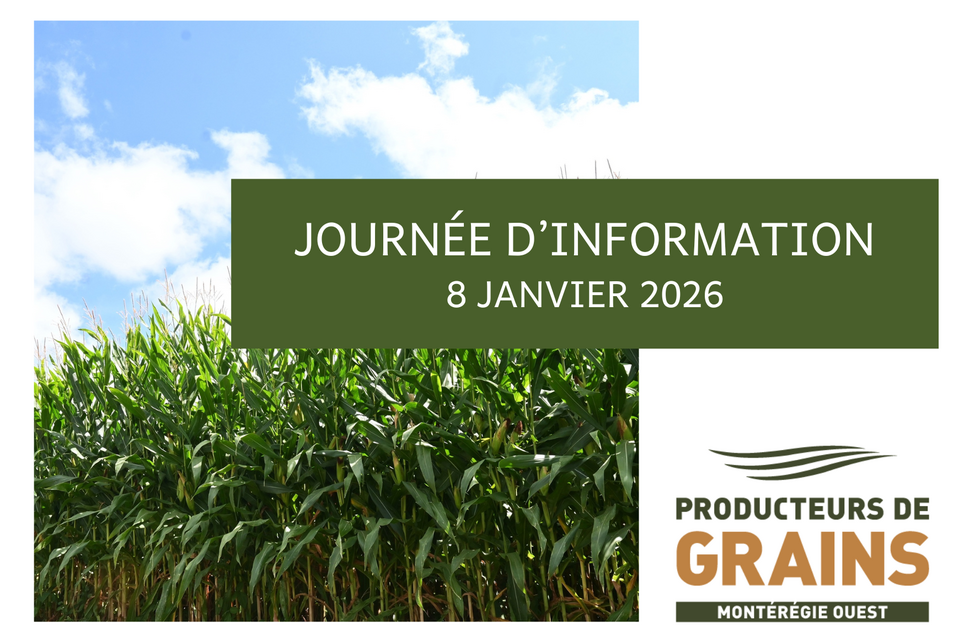 Les Producteurs de grains Montérégie Ouest vous invite à une journée d'information le jeudi 8 janvier 2026.