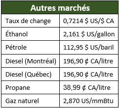 Le maïs et le soya ont clôturé en baisse, tandis que le blé a terminé en hausse, pour des raisons techniques. Les variations sont à l’opposé de celles d’hier, mais la tendance des prix demeure baissière. Par ailleurs, le prix de l’huile de soya se situe à son plus haut niveau depuis juillet 2023, ce qui a permis de soutenir le prix du soya depuis le début de l’année. L’échéance exigée par Donald Trump à l’Iran pour rouvrir le détroit d’Ormuz expirera ce soir à 20 h. À défaut d’une entente, les États-Unis ont menacé de bombarder l’ensemble des ponts et des centrales électriques du pays, une escalade qui soulève de sérieuses préoccupations sur le plan du droit international. Le prix du pétrole brut s’est alors accru en Bourse, s’élevant à son plus haut niveau depuis juin 2022. Le huard s’est légèrement apprécié aux alentours de 0,7215 $ US.