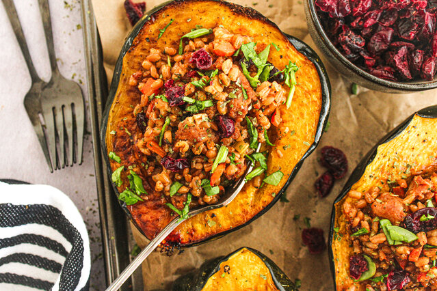 Courges poivrées farcies à l’épeautre