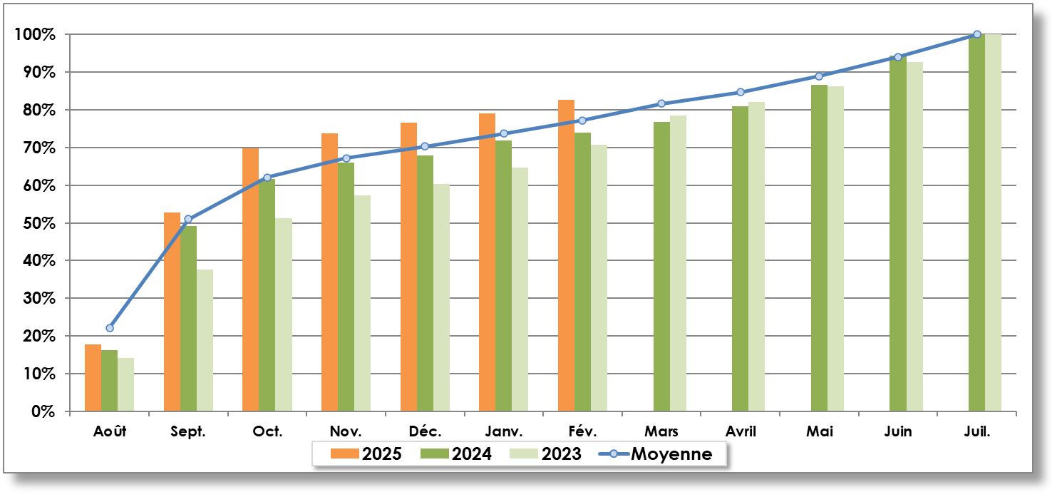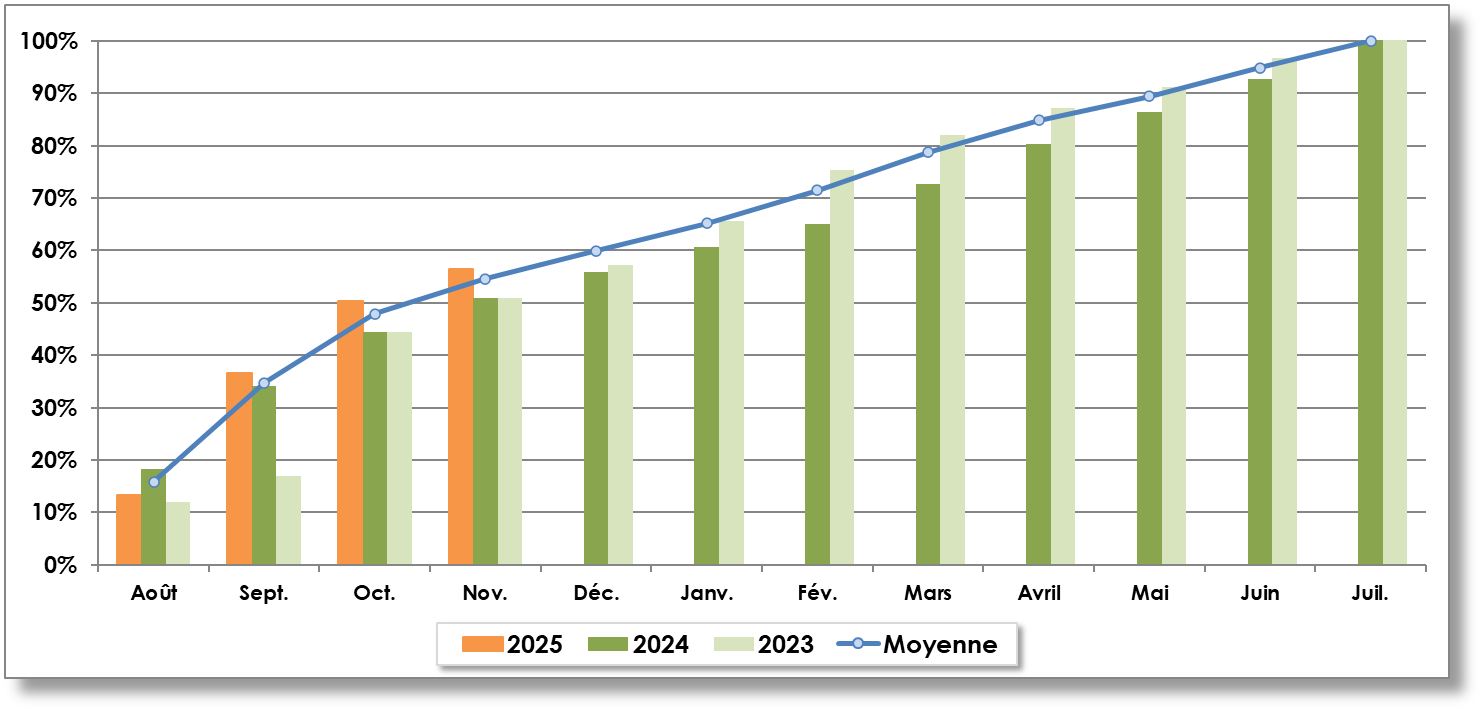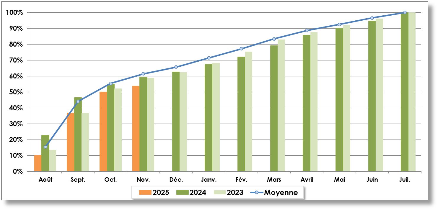 Année récolte | Août | Septembre | Octobre | Novembre | Décembre | Janvier | Février | Mars | Avril | Mai | Juin | Juillet | TOTAL |