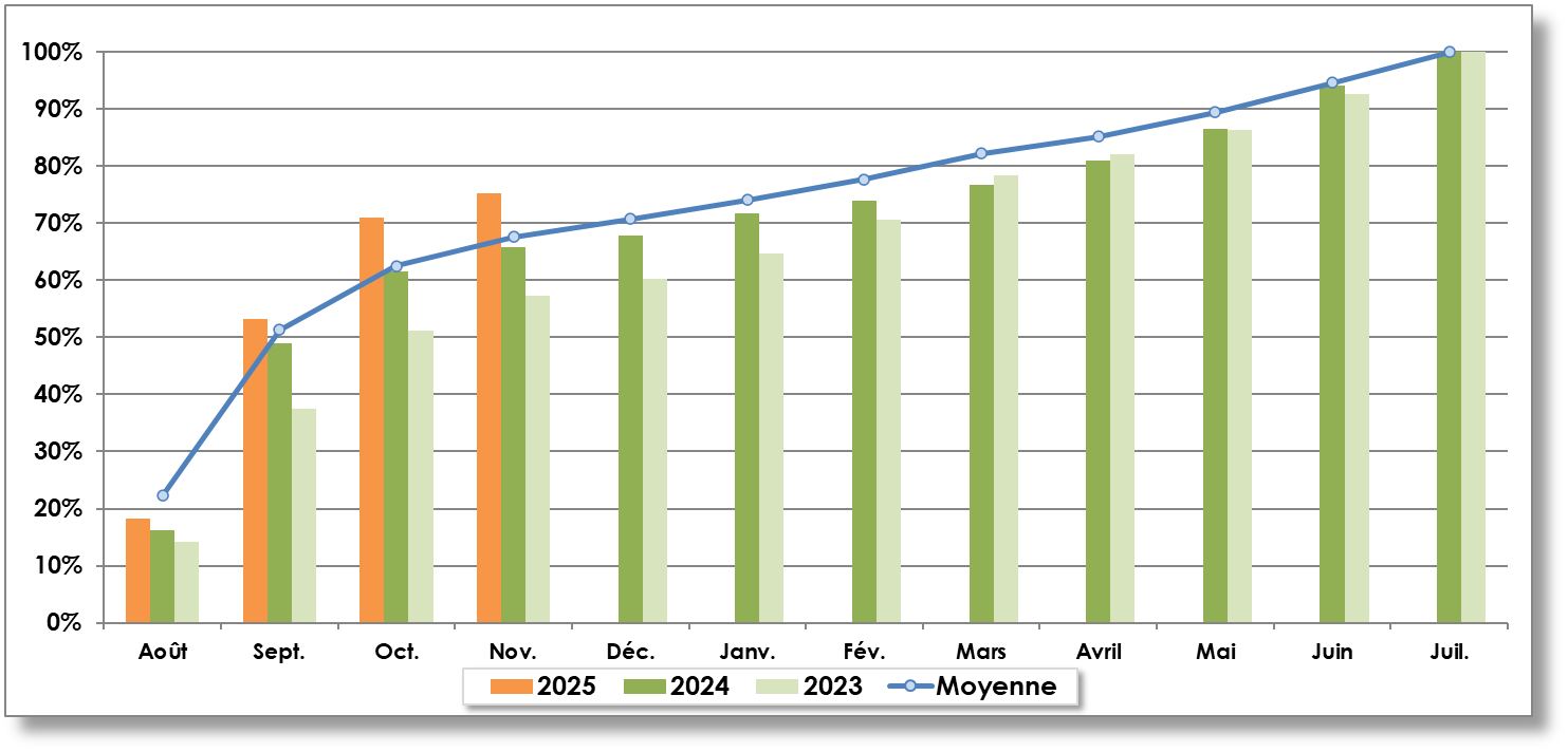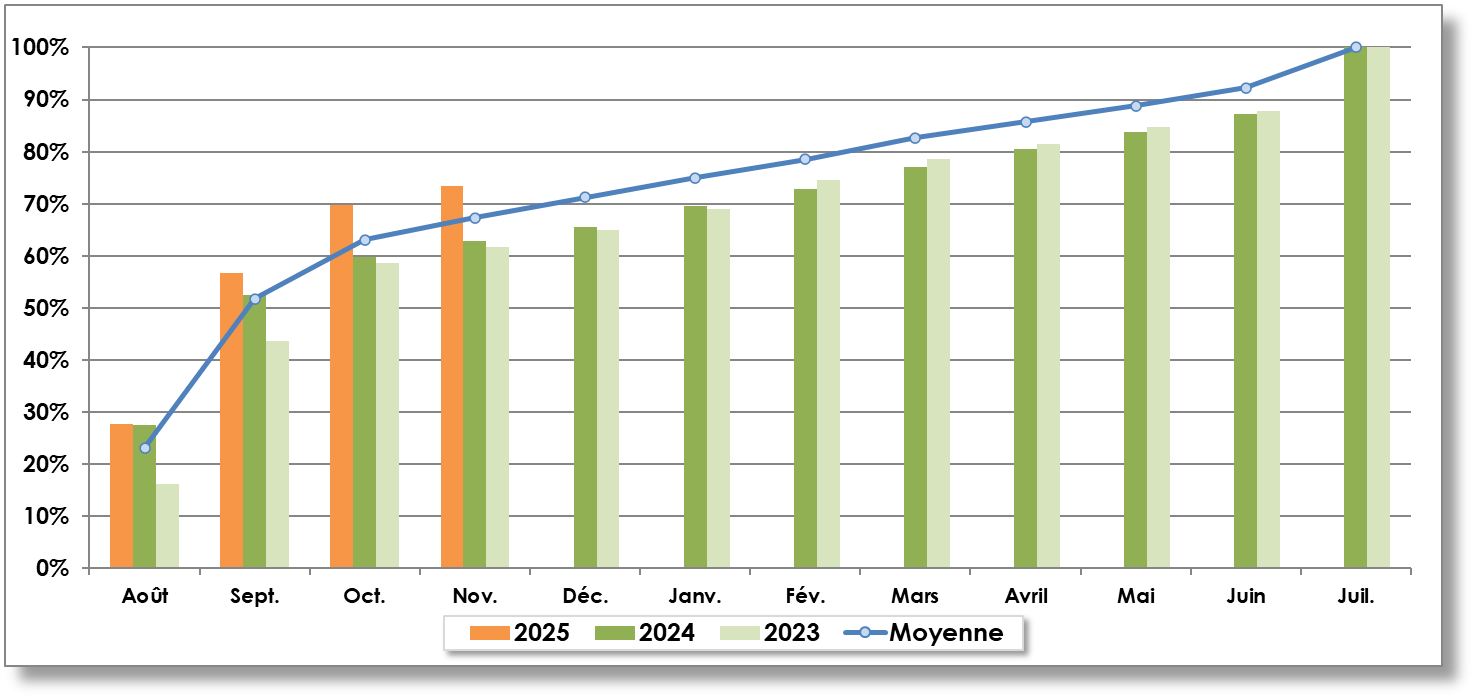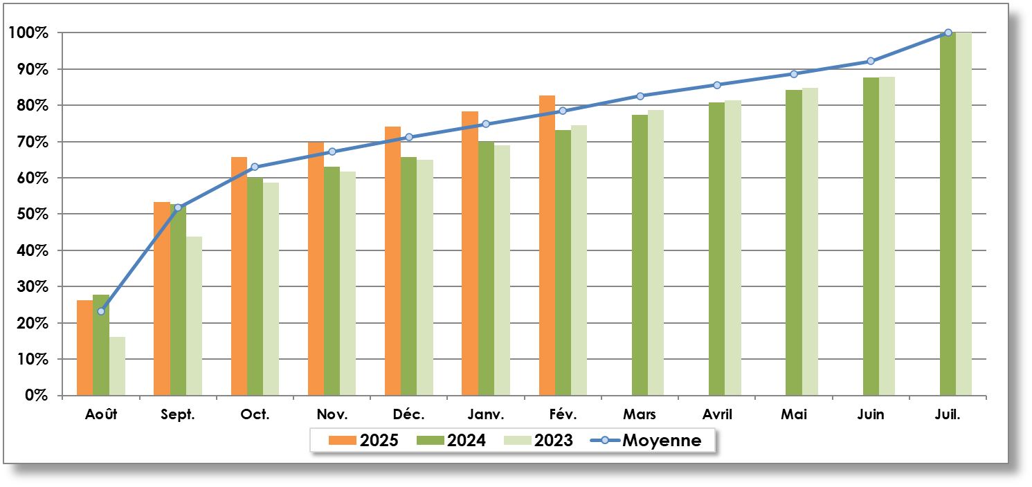 Année récolte | Août | Septembre | Octobre | Novembre | Décembre | Janvier | Février | Mars | Avril | Mai | Juin | Juillet | TOTAL |