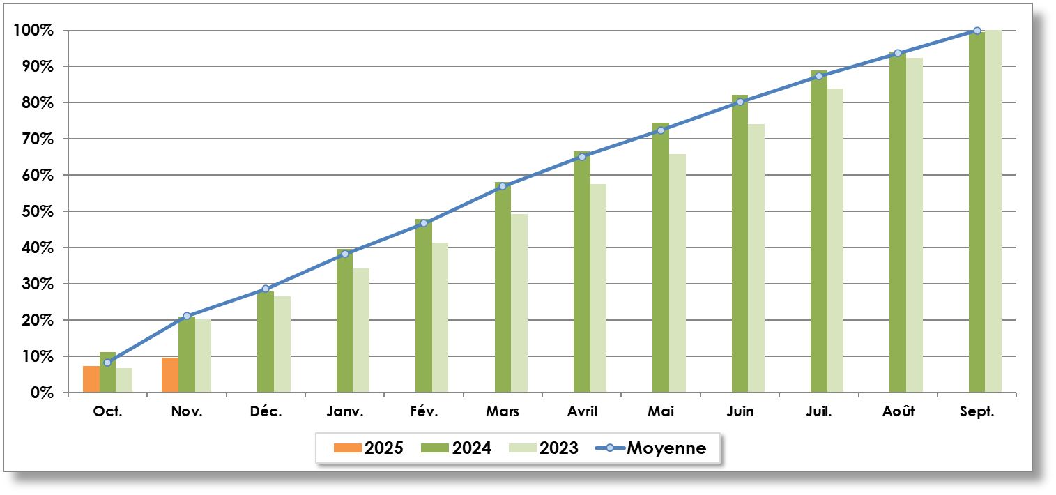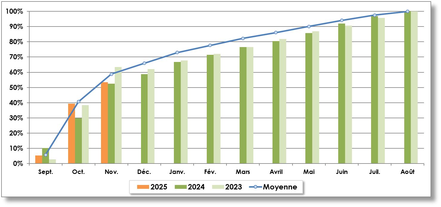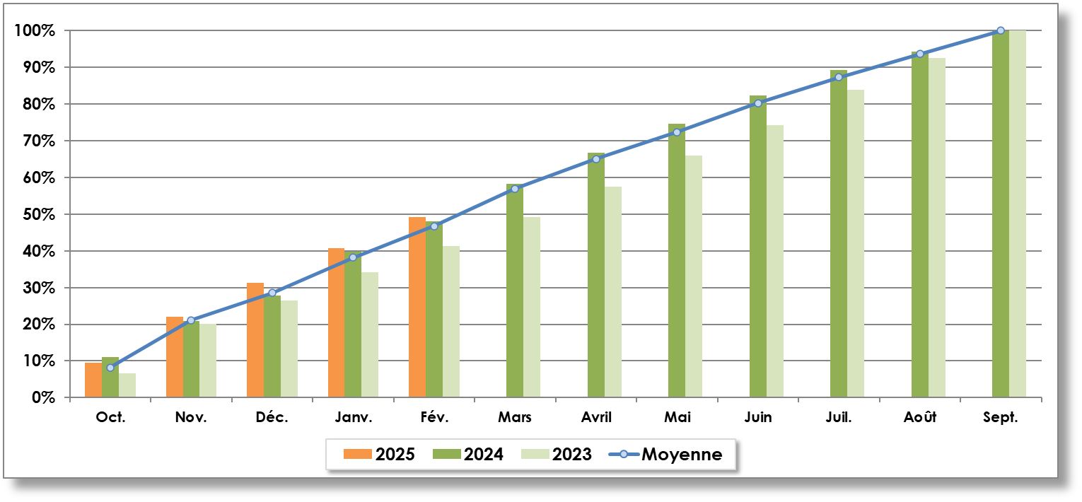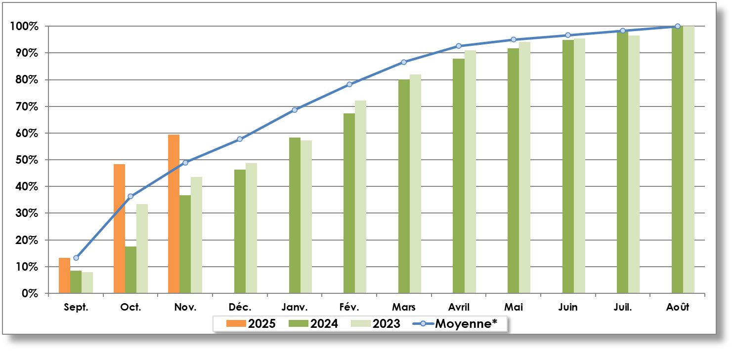 Année récolte | Septembre | Octobre | Novembre | Décembre | Janvier | Février | Mars | Avril | Mai | Juin | Juillet | Août | TOTAL |