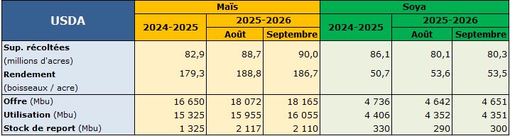 - 9 octobre : Mise à jour du bilan de l'offre et de la demande mondiales USDA