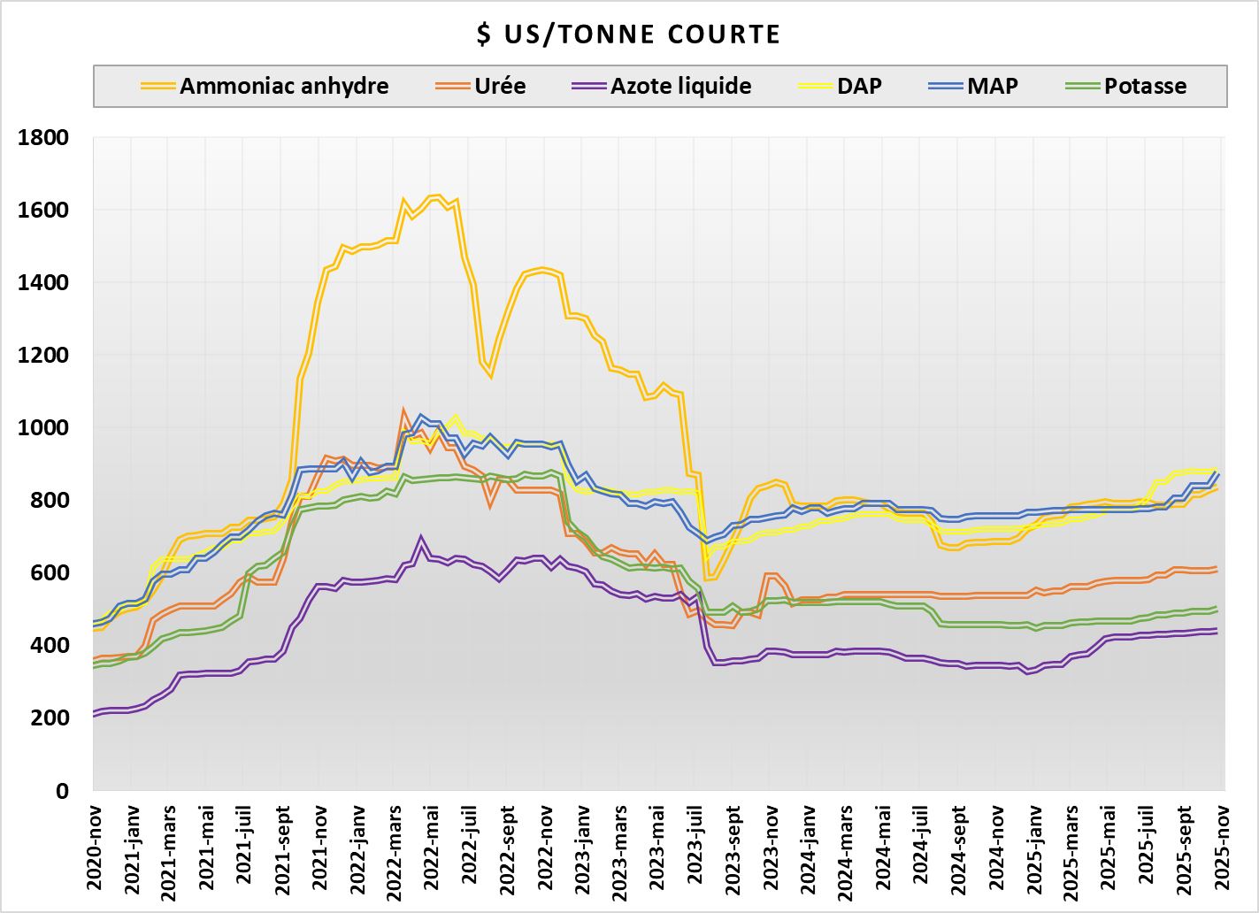 Prix exprimés en $ US/tonne US ou tonne courte (pour convertir en tonne métrique, diviser par 0,9072)