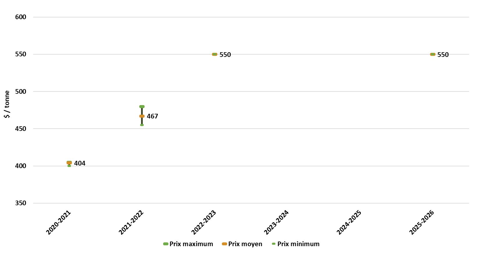 Prix moyen pondéré | 467 | 550 | - | - | 550 |