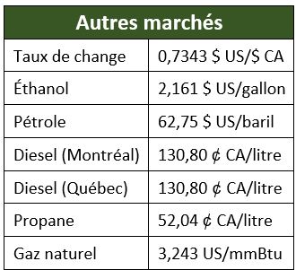 Les Bourses américaines ont été fermées en raison d’un jour férié aux États-Unis, le Presidents Day ou le Jour des présidents. Par conséquent, la publication des rapports de l’USDA de cette semaine est décalée d’un jour. Le dollar canadien est resté stable à près de 0,7345 $ US.