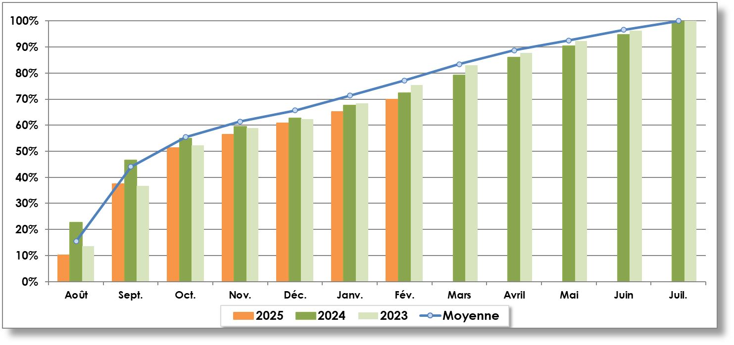 Année récolte | Août | Septembre | Octobre | Novembre | Décembre | Janvier | Février | Mars | Avril | Mai | Juin | Juillet | TOTAL |