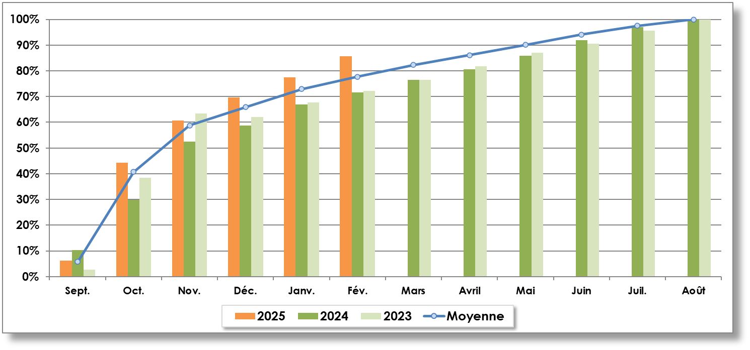 Année récolte | Septembre | Octobre | Novembre | Décembre | Janvier | Février | Mars | Avril | Mai | Juin | Juillet | Août | TOTAL |