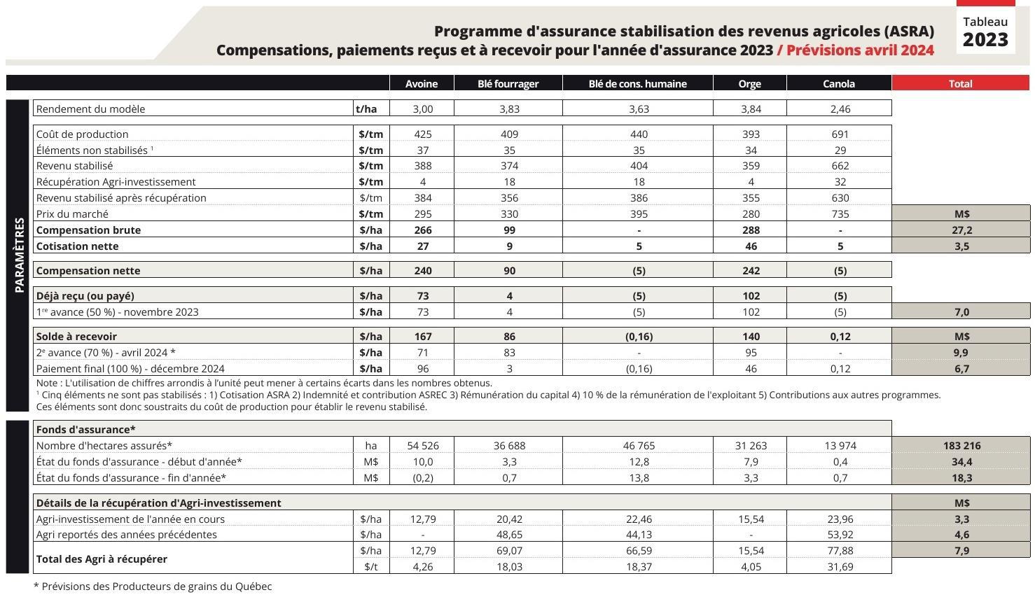 Les Producteurs de grains du Québec (PGQ) produisent annuellement divers bulletins d’information permettant aux producteurs concernés de calculer les montants à recevoir ou à payer selon leur production :