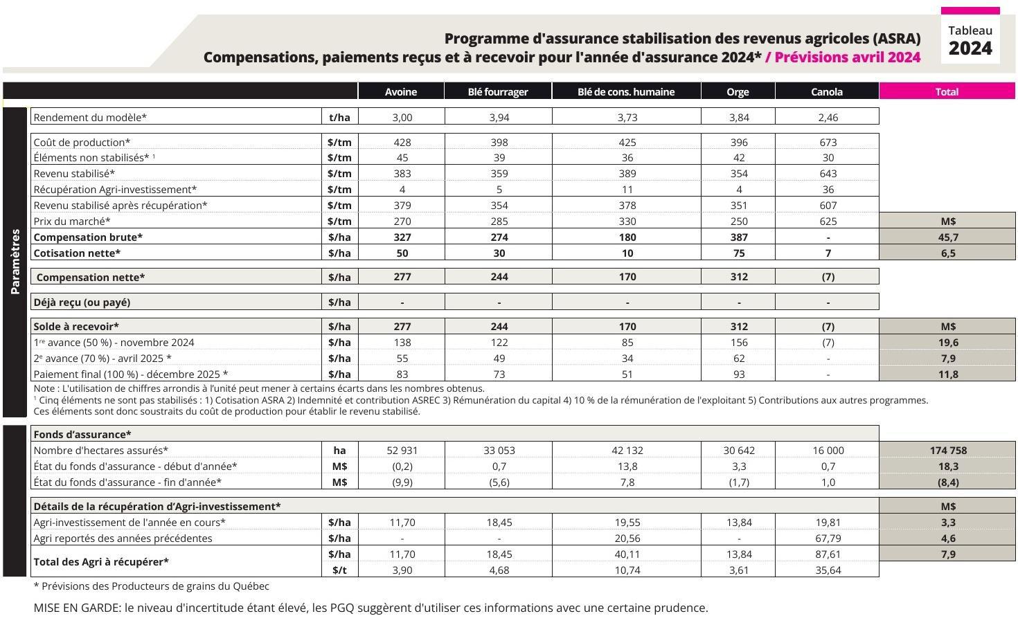 Une nouvelle étude sera réalisée en 2025, portant sur les données de 2024. Les résultats seront utilisés à compter de l’année d’assurance 2026. Les Producteurs de grains du Québec (PGQ) participeront au comité sectoriel au sein duquel sont présentés les travaux.